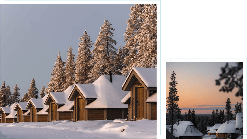 位於北極圈上的羅瓦涅米,Santa Claus Village 是夢想與現實交會的場所。白雪靄靄的木屋與點點燈火,營造出童話般的氛圍;旅人可親手跨越北極圈線,寄出專屬的北極郵戳,或與聖誕老人面對面,感受這份超越季節的溫暖。無論白晝或極夜,這裡都像是一場永不落幕的節慶,將赤子之心悄然喚醒。