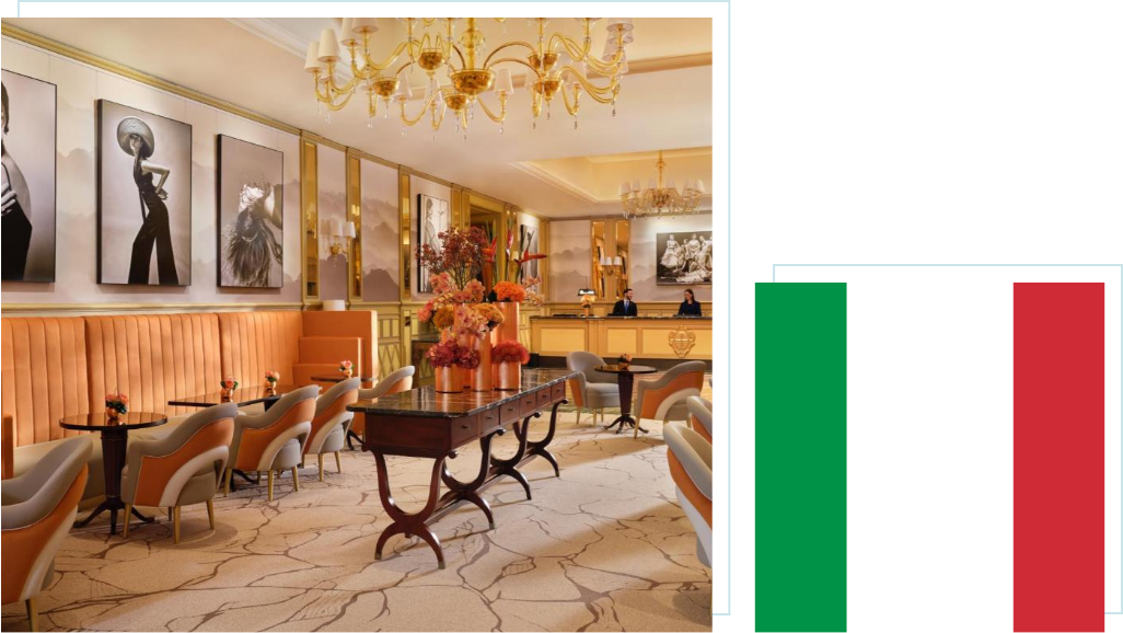 坐落於米蘭核心地段,是義大利最具代表性的奢華酒店之一,完美融合古典宮廷風格與現代精緻設計。酒店內部以大理石、絲絨、金色裝飾與水晶吊燈營造出尊貴華麗的氛圍,每一處細節皆展現義式工藝之美。客房空間寬敞舒適,設計典雅,提供頂級備品與貼心服務,讓旅客享有無與倫比的住宿體驗。無論商務或度假皆能感受極致尊榮與品味,是米蘭奢華生活的象徵。