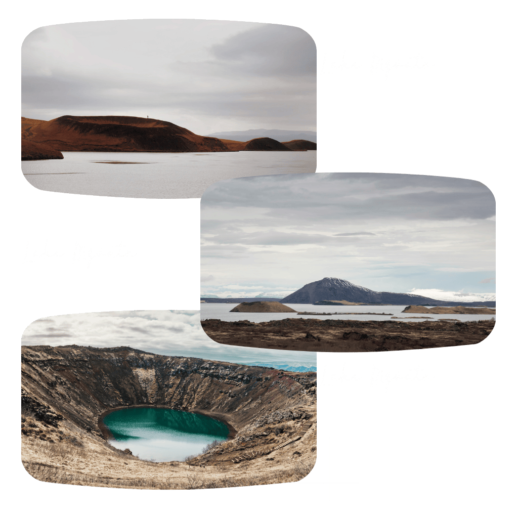 米湖(Mývatn)位於冰島北部,是火山與湖泊交織而成的夢幻景區。湖面點綴著大小島嶼與假火山錐,宛如奇幻世界。周邊遍布蒸騰的地熱區、硫磺噴氣孔與壯麗熔岩地形,步行其間彷彿踏上另一個星球。