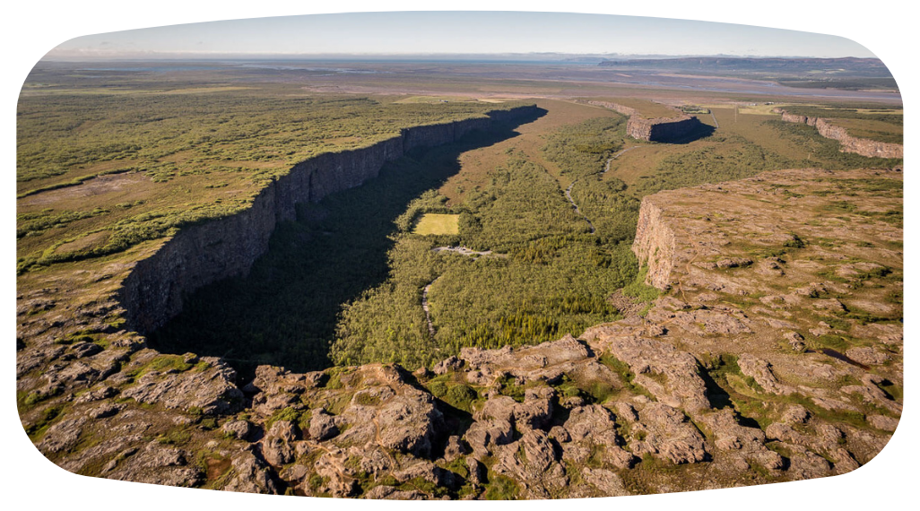 傳說這裡是北歐神話中奧丁的八足戰馬留下的蹄印,每踏一步都能感受到神話的力量。你沿著峽谷小徑探險,可能會發現隱蔽的瀑布,也可能遇見自由飛翔的海鷗。夏日的午夜太陽照亮整個峽谷,整片景象宛如另一個世界,讓人既驚嘆又心生敬畏。