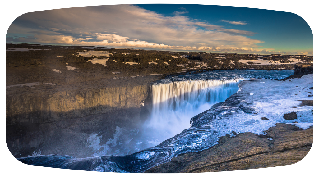 黛提瀑布位於冰島東北部,是旅人心中必訪的自然奇景。寬廣瀑幕傾瀉而下,冰河水濺起的白霧在陽光下閃爍,氣勢磅礡。沿著步道漫行,可近距離感受大地震動般的轟鳴聲,壯闊景色讓人心醉。這裡遠離塵囂,適合放慢腳步,用雙眼與心靈細細品味冰島的大自然魅力。