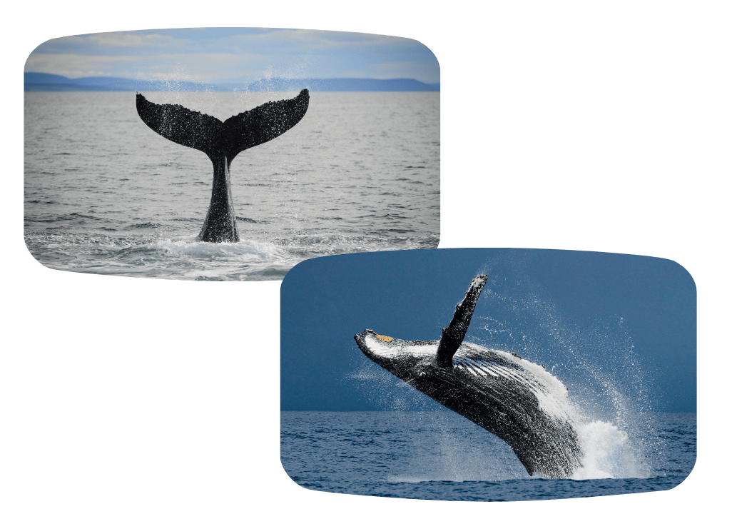 乘賞鯨船出海,鯨魚躍出海面,冰藍海光與巨獸共舞,身歷絕世美景。