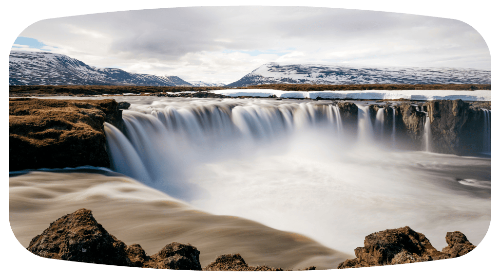 眾神瀑布位於冰島西南部黄金圈區域,是當地最具代表性的自然景觀之一。寬廣的河水分層奔流,從階梯狀岩壁傾瀉而下,形成壯麗水幕。瀑布在晴天常出現彩虹,如神祇降臨般神秘耀眼,是旅人拍攝與親近大自然的絕佳景點。