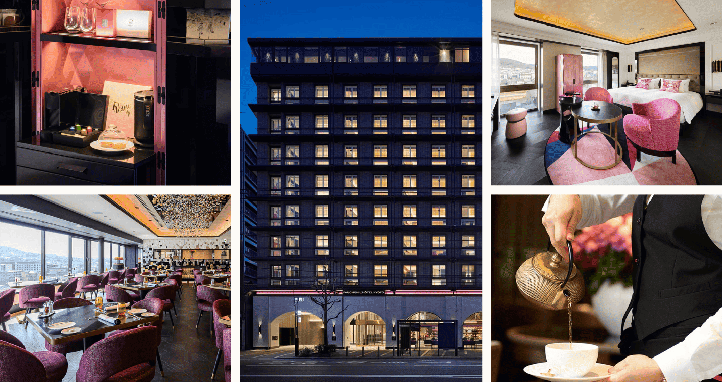 傳承自巴黎百年精品品牌 FAUCHON,將經典的粉黑時尚完美融入京都光影,