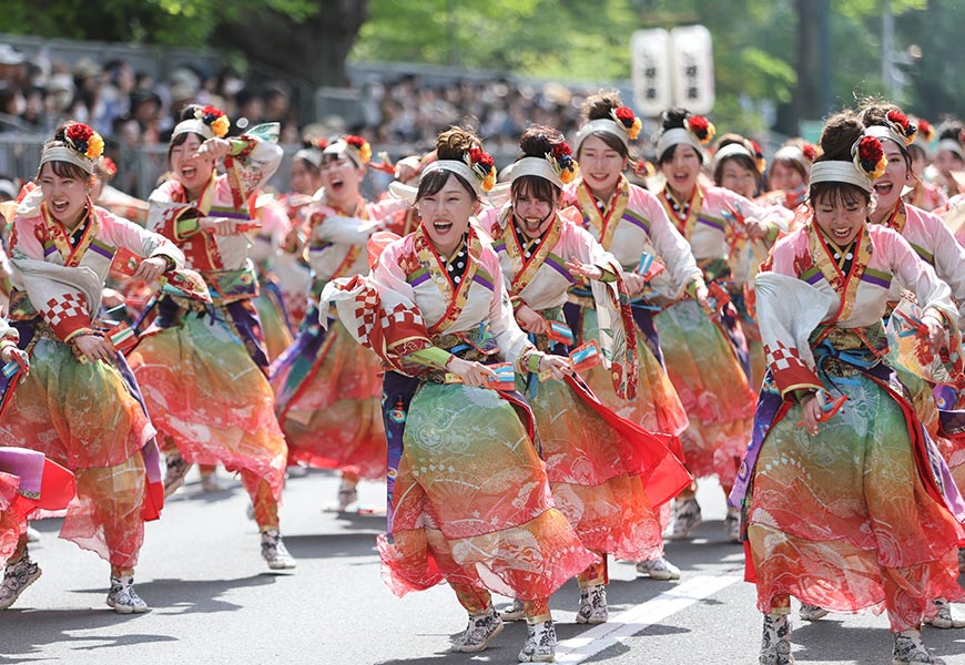 許多祭典都有精采絕倫的遊行與舞蹈表演,像是融合現代風格的索朗祭,或邀請國際表演團隊共襄盛舉的真中祭。觀眾不僅能欣賞華麗舞蹈,甚至能實際參與,讓整座城市瞬間沉浸於歡樂之中。