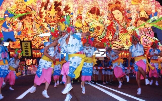 起源於農民夏日點燃燈籠驅邪避禍的風俗,以各種歌舞伎、歷史、神話為題材,由職人精心製作的20座巨大「睡魔燈籠」,配合激昂的太鼓聲與吶喊,穿梭在青森街道之上,舞者身穿傳統服飾、隨鼓聲熱舞,猶如走進另一個魔幻世界,在喧囂中享受日本傳統舞蹈的魅力,青森睡魔祭也在1980年被登記為「重要無形民俗文化財」。祭典的最後一晚還會有壯麗的煙火大會,為每年祭典畫上完美一筆優!