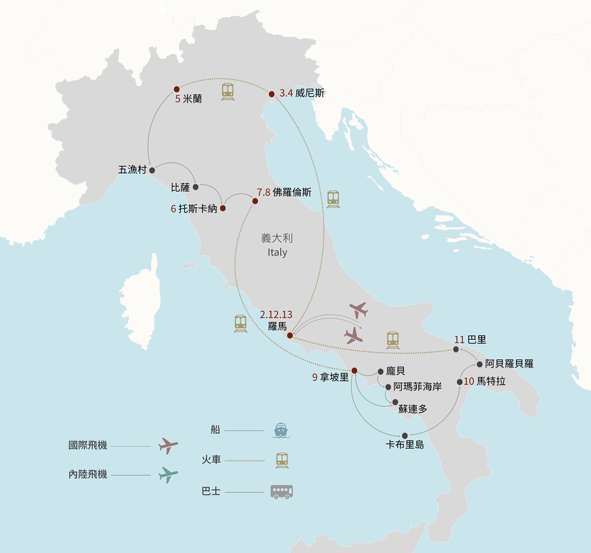 7. 部分歷史古城區、世界遺產或交通管制區域,旅遊巴士無法進入,需改以接駁車或步行方式前往,敬請配合整體安排。