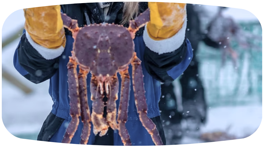 跟隨漁夫前往冰封海域,體驗在厚冰上鑿洞、拉起漁網的傳統捕撈方式。當巨大的帝王蟹現身,旅人將親手參與這場極地盛宴。最後品嚐鮮甜飽滿的蟹肉,為探險畫下完美句點。