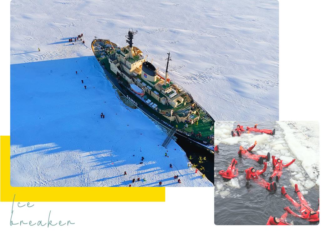 乘坐傳奇的三寶號破冰船,劃破厚達數十公分的冰層,親身感受北極海域的磅礴力量。旅程中可登上甲板俯瞰壯闊冰原,穿上特製浮冰裝,漂浮於冰海之上,體驗極地探險的獨特快感。