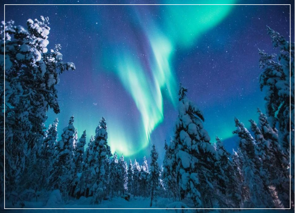拉普蘭的夜色,像一幅無邊的靛藍畫布,靜靜鋪展在雪原之上。遠離塵囂,唯有皚皚白雪在月光下閃耀,彷彿銀砂灑落大地。當寒氣凝結呼吸,心也在此刻歸於沉靜。這是一種只有極北能給予的寧謐——旅人得以在天地交織的純淨時刻,感受靈魂最柔軟的安放。