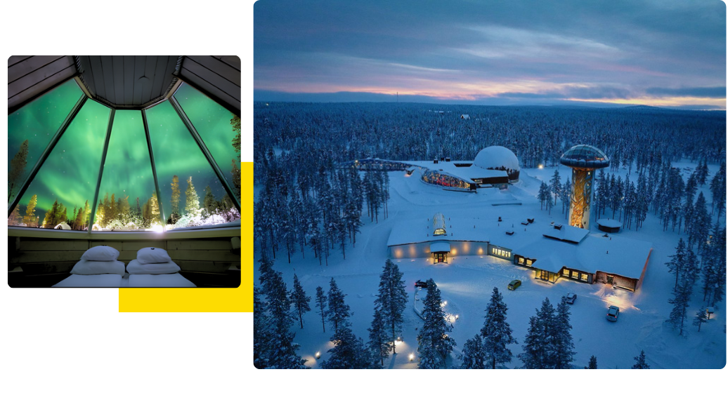 坐落於芬蘭拉普蘭靜謐雪林間,Kakslauttanen Arctic Resort 以標誌性的玻璃圓頂屋與冰屋聞名於世。當夜幕低垂,旅人可在溫暖的玻璃屋中仰望極光與繁星,彷彿置身一場北國夢境。度假村同時提供原木小屋、冰屋等多元住宿體驗,結合北極風情與現代舒適。