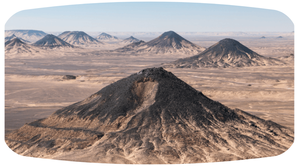 以奇特的火山岩地形與深色礫石聞名,仿佛大自然雕刻的神秘畫布。廣闊荒原中,點綴著黑色火山錐與岩石丘陵,黃沙與暗岩交錯,形成強烈視覺對比。清晨或黃昏時,光影變化更添荒漠魅力,吸引攝影愛好者捕捉最震撼的瞬間。黑沙漠雖荒涼,但正是這份孤寂,讓旅人感受到沙漠的原始力量與自然神秘感,是探索埃及荒原不可錯過的秘境之一。