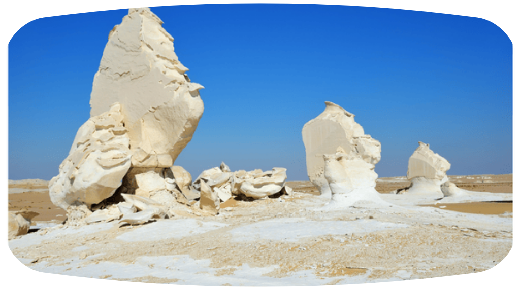 位於埃及西部撒哈拉腹地,以潔白石灰岩構成的奇幻岩雕聞名,宛如月球表面般神秘。風吹塑造出奇特的蘑菇狀、動物形或抽象造型岩石,隨光影轉換呈現千變萬化的景象。日落時分,白沙映照橘紅天空,沙漠宛如夢境般浪漫而靜謐。這裡能讓旅人徹底沉浸在荒漠的寧靜與奇幻之中。