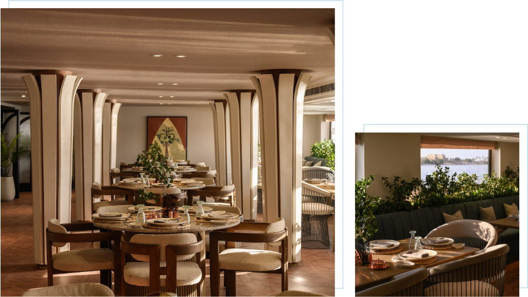融合傳統埃及料理與現代地中海風格的高級餐廳。餐廳以本地新鮮食材精心烹調,呈現創意與經典兼具的菜品,並注重擺盤與味覺體驗。壯麗的金字塔景觀與雅致的用餐環境,讓每位饕客在享受美食的同時,也能感受歷史與文化氛圍。其卓越的料理水準與獨特體驗,使其榮登「中東北非50佳餐廳」榜首,成為埃及最具代表性的餐飲地標之一。