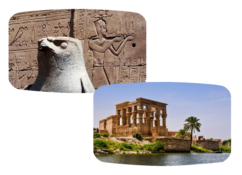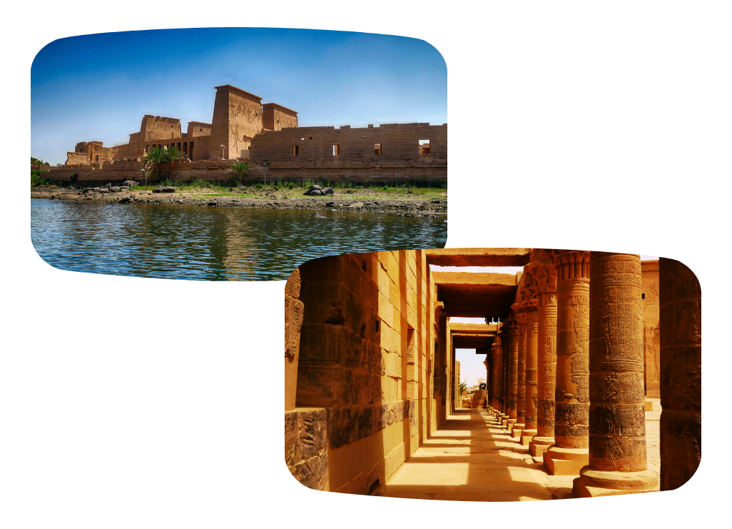 菲萊神殿座落尼羅河畔,是古埃及伊西斯女神的神聖殿堂。原位於菲萊島,因水壩搬遷至高地重建,雕刻精美、壁畫生動,講述法老與神祇的傳奇故事。晨昏時分,神殿倒映在河水中,金光映照古老石牆,景致浪漫而神秘,是旅人沉浸尼羅河文化的必訪之地。
