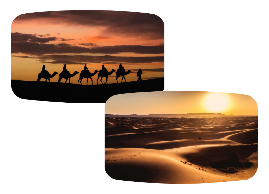 帶你穿越穿越黃金沙海,近距離觀賞雄偉金字塔與狮身人面像,伴隨日落景色,享受寧靜沙漠氛圍,感受埃及傳統風情。