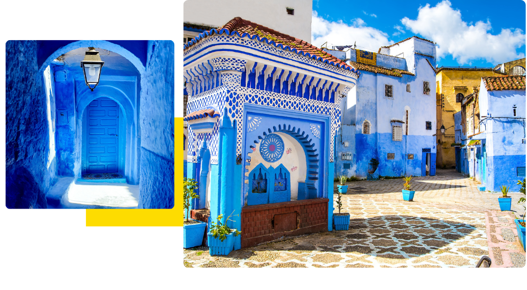 契夫蕭安,隱藏在里夫山脈的藍色山城,每一條小巷都是一幅畫。門窗、牆面、石階的不同藍調構成層次感,街角小店、懸垂花盆與悠閒貓咪,讓人彷彿走進童話世界。黃昏時分,夕陽映在藍色山城上,金光與藍意交錯,瞬間成為攝影師的夢幻場景。這裡不僅是視覺盛宴,也是一座讓人心靈寧靜的城市。