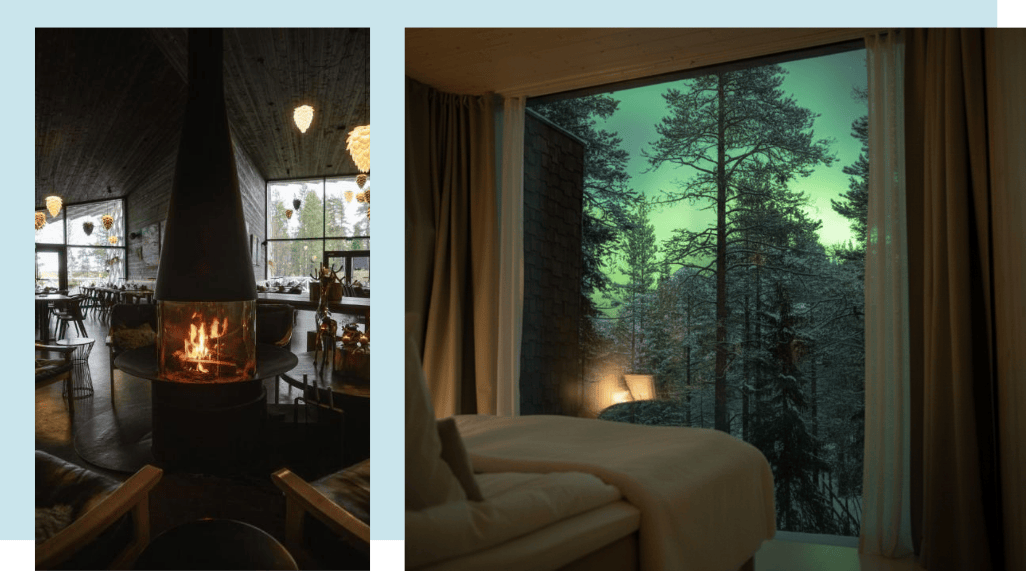坐落於森林深處的樹梢,北極樹屋飯店以獨特的「鳥巢式」全景套房驚艷世界。透過溫暖的木質調空間與巨大的落地窗,窗外的北國森林與極光美景一覽無遺,完美詮釋了現代設計與自然環境的和諧共生。在此,您將體驗到奢華與野性的平衡,享受被大自然環抱的靜謐感,留下難以忘懷的北極圈深度度假回憶。