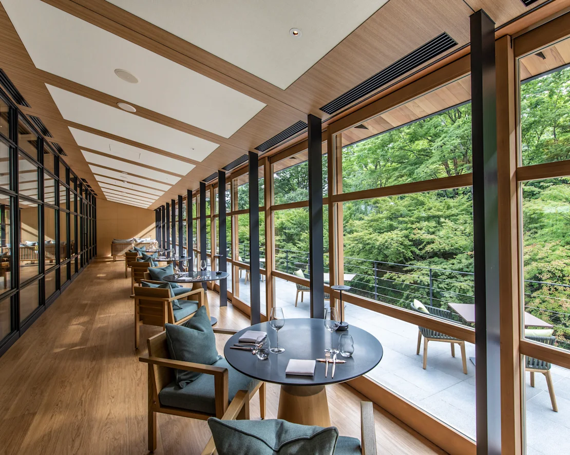 建築融合京都傳統與現代極簡美學,飽覽大堰川絕景,同時欣賞橫跨江戶至現代的藝術巨作,體驗優雅的靜謐時光。