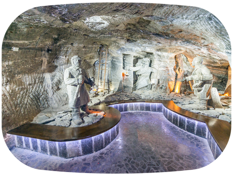 走入歐洲最古老的鹽礦之一,搭乘礦車深入山腹、滑下木製滑梯,體驗地底文明的千年故事。