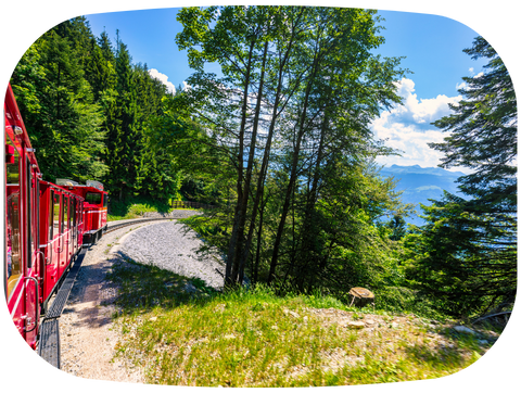 搭乘夏夫堡登山火車緩緩攀升,悠緩穿行於山谷與湖泊之間,沿途盡覽薩爾茨卡默古特的自然絕景。
