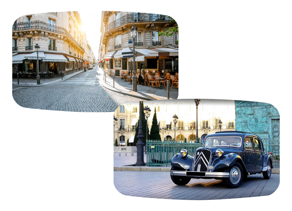 在經典古董轎車裡,巴黎的石板街與鐵塔剪影如電影畫面般流轉。駛過香榭大道、羅浮宮、協和廣場,每一站都是一頁光影記憶。由法國紳士司導隨行,不僅掌舵車輪,更以從容風範講述城市故事。恣意穿梭在巴黎經典與隱密街區之間。以儀式感開啟巴黎浪漫,行駛之間,恆久回味。