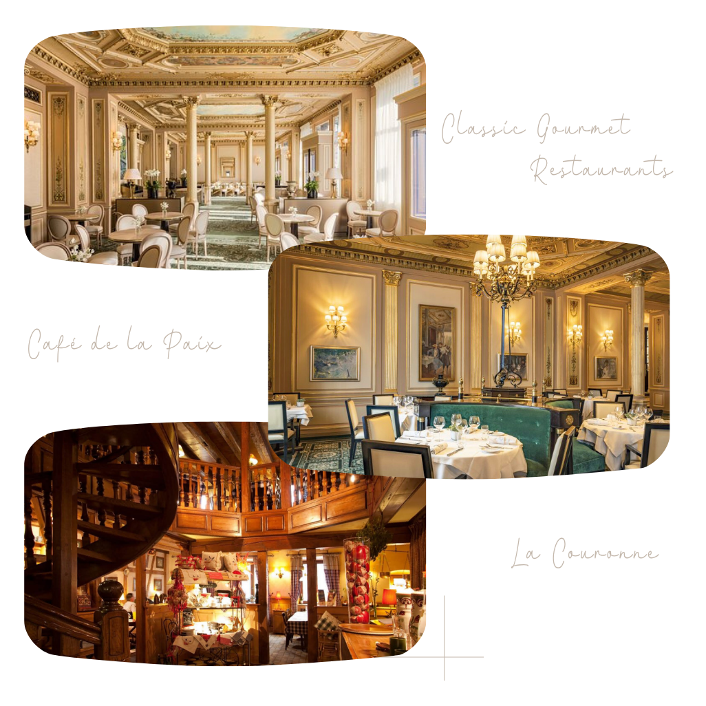 不僅安排米其林星級餐廳,也特別納入在地傳奇美食體驗。從米其林餐桌的精緻,到百年名店的傳奇風味,再到鄉間小鎮的在地佳餚。聖米歇爾山的鹽沼羊肉、諾曼第的海鮮料理、巴黎百年餐廳的優雅,讓旅程在味蕾間延伸,精緻與溫度並具。