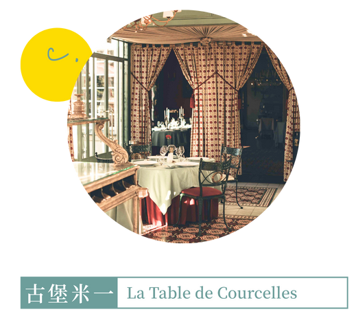 位於十七世紀古堡中的 La Table de Courcelles米其林一星級餐廳,廚藝團隊以精緻法餐結合季節食材,創造出藝術般的美饌。置身古堡優雅氛圍中用餐,彷彿展開一場穿越時光的奢華饗宴。