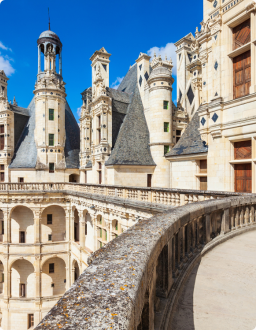 香波堡是法國最宏偉的文藝復興城堡之一,被譽為「城堡之王」。由法王法蘭索瓦一世下令興建,結合文藝復興與中世紀建築元素,擁有壯麗的雙螺旋樓梯與440間廳室。其龐大規模與精緻設計展現了皇室權力與藝術美學的結合,至今仍是盧瓦爾河流域最具代表性的地標。