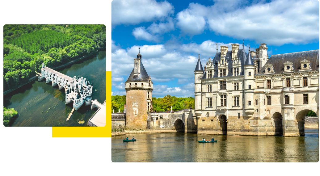 雪儂梭堡以優雅之姿橫跨羅亞爾河,被譽為「城堡之后」。其獨特的橋樑式建築與華麗裝飾展現女性柔美與藝術氛圍。