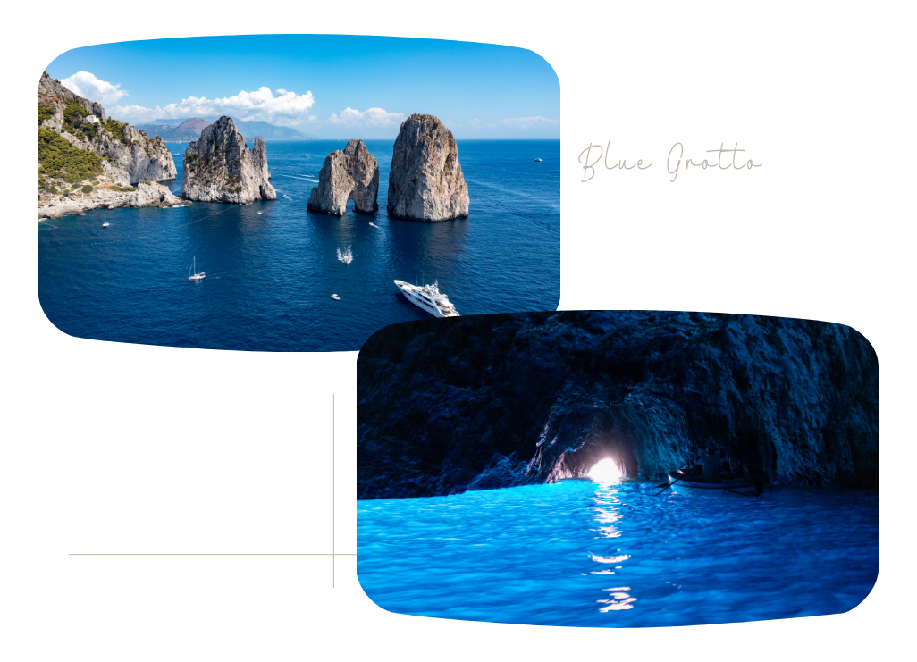 陽光穿越海面裂縫,灑入岩洞之中,海水在光影交錯間化作夢幻的湛藍。這裡是卡布里島最令人屏息的奇景——藍洞(Blue Grotto)。乘著小舟進入幽暗的洞口,瞬間被一片光的海洋包圍,彷彿進入了時間之外的世界。海水的藍,不只是顏色,而是一種能滲入靈魂的寧靜。