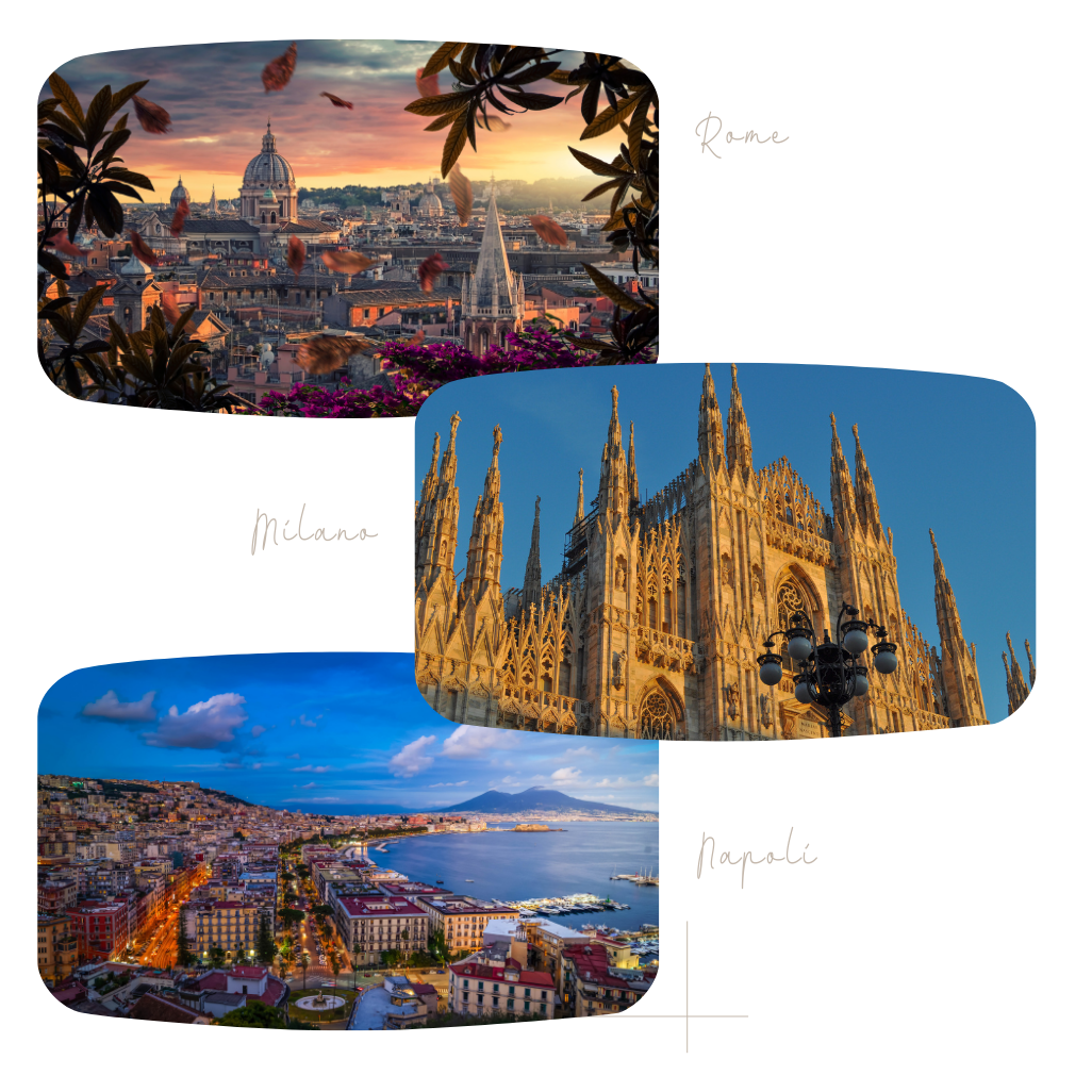 從古羅馬的帝國遺韻,到米蘭的時尚光影,再到拿坡里的海岸氣息,這趟旅程串起義大利最經典的三座城市。一步一景,皆是歷史與現代的交錯篇章;一程之內,盡覽義式藝術、文化與生活風華。