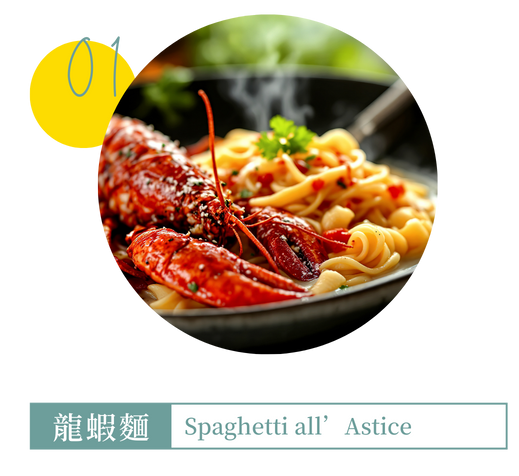濃郁的龍蝦香氣伴隨著番茄的微酸,在盤中交織出專屬於地中海的味覺層次。義大利龍蝦麵以新鮮龍蝦熬煮湯底,麵條吸附飽滿海味,每一口都散發出深海的甜與陽光的暖。不僅是味蕾的盛宴,更是義式生活的縮影——簡單、純粹,卻極致講究。